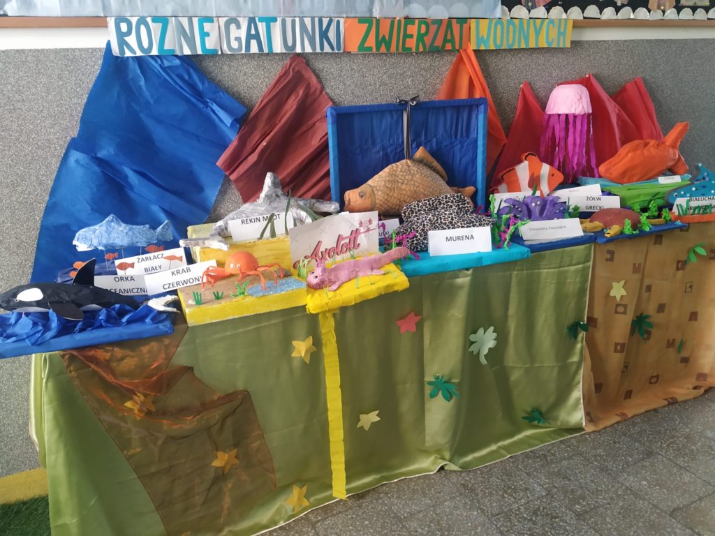 Na zajęciach Koła Biologicznego uczniowie zapoznali się z różnymi gatunkami zwierząt wodnych. Dowiedzieli się na temat przystosowań tych zwierząt do środowiska życia i rodzaju spożywanego pokarmu. Poznali sieć zależności pokarmowych organizmów wodnych. Podsumowaniem projektu było wykonanie wystawy prezentującej makiety różnych gatunków zwierząt wodnych.