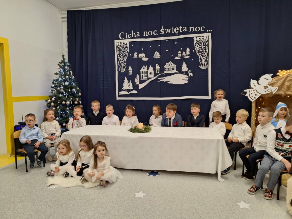 W naszym przedszkolu odbyło się spotkanie świąteczne, podczas którego dzieci przedstawiły inscenizację inspirowaną przygotowaniami do Wigilii oraz pozwoliły przenieść się do dawnych wydarzeń, które miały miejsce w Betlejem Nie zabrakło przepięknych pastorałek i kolęd, które wprowadziły wszystkich w magiczny nastrój Przedszkolaków odwiedził również Święty Mikołaj To było spotkanie pełne wzruszeń, pokoju i radości w sercach