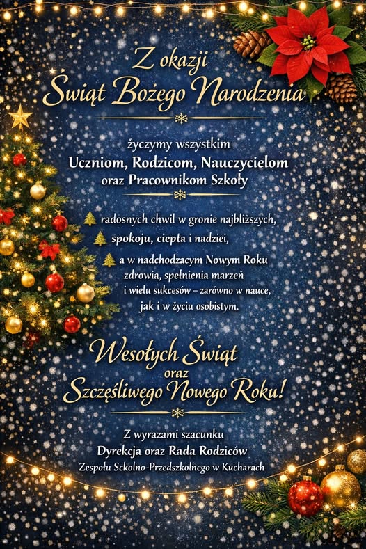 Niech te Święta Bożego Narodzenia dostarczą wiele szczęścia, radości i rodzinnego ciepła, a nadchodzący Nowy Rok spełni wszystkie marzenia Grupa Starszaki