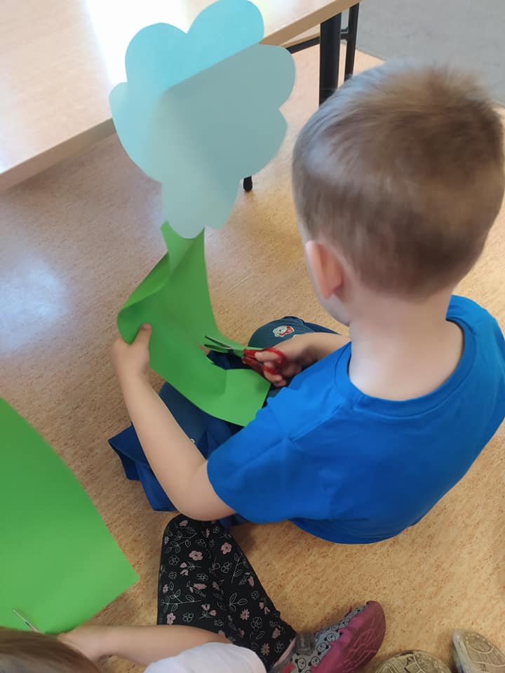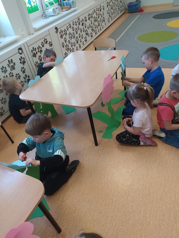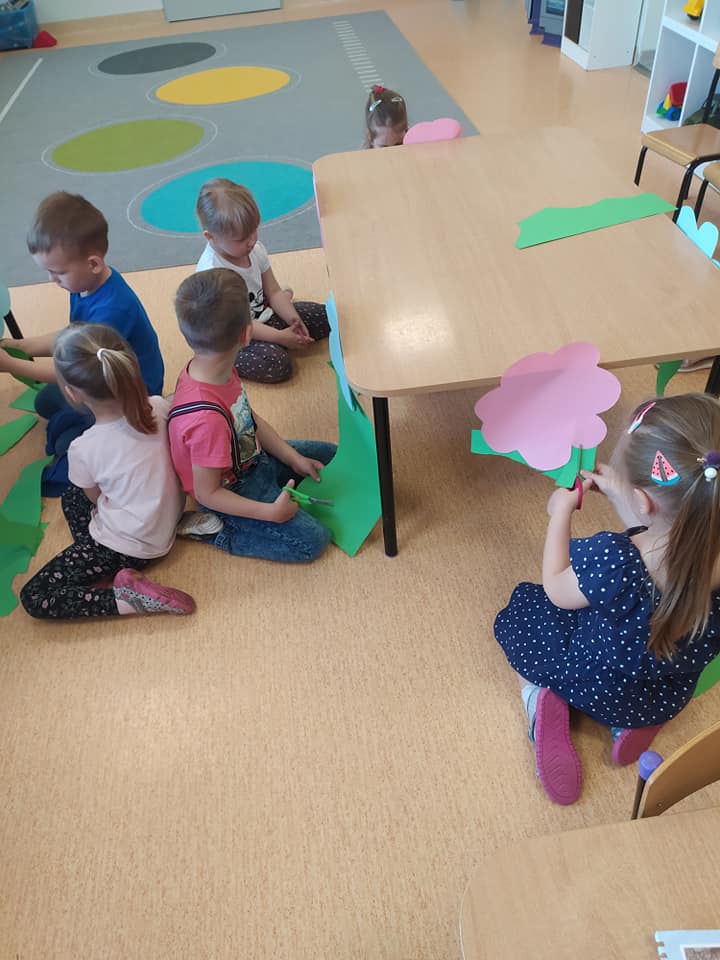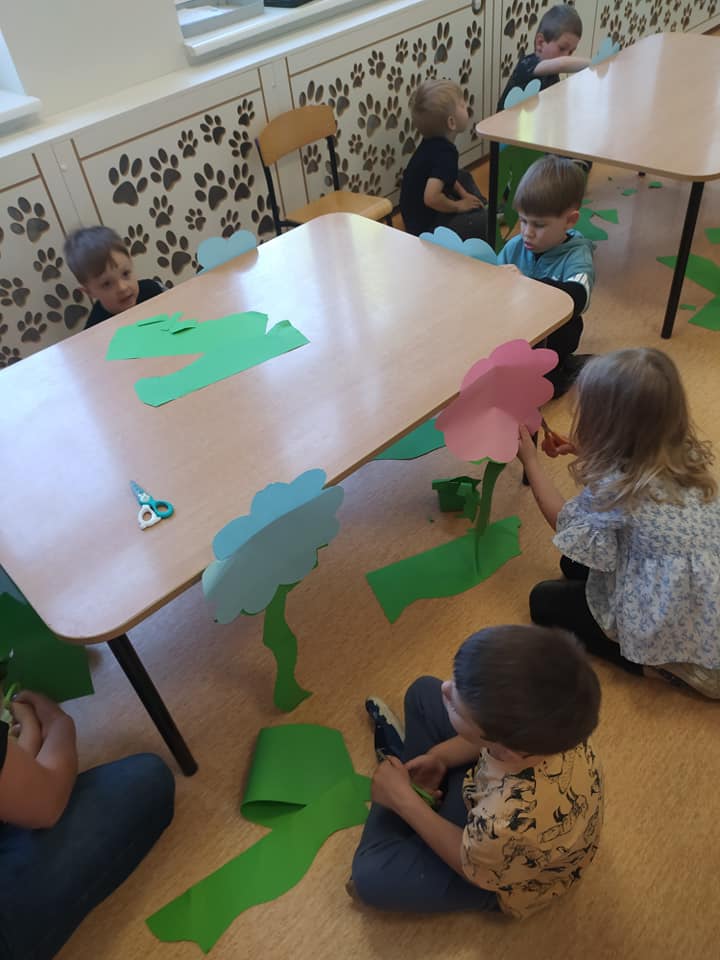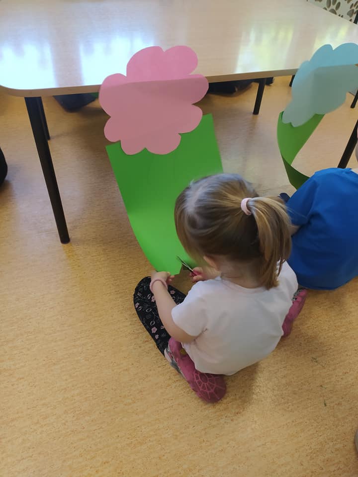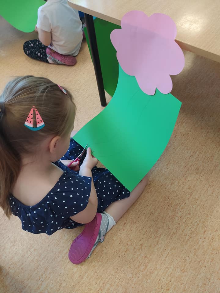 Przedszkolaki w dość nietypowy sposób ćwiczyły umiejętność cięcia nożyczkami A nasze przedszkole zamieniło się w piękną, kolorową łąkę