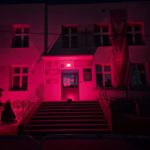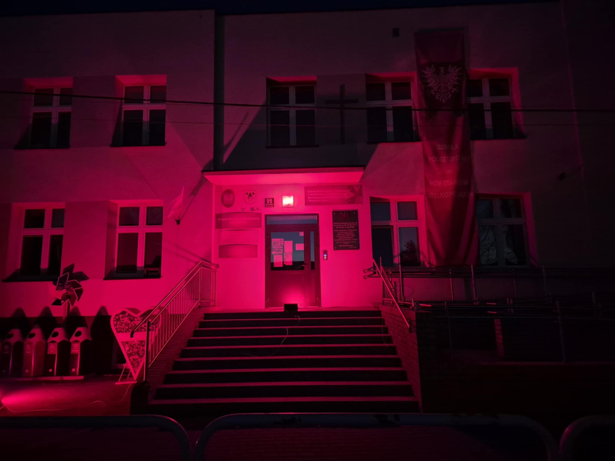 19.11.25r. budynek szkoły rozświetlił się na czerwono, aby wyrazić sprzeciw wobec przemocy i okazać wsparcie dzieciom.
