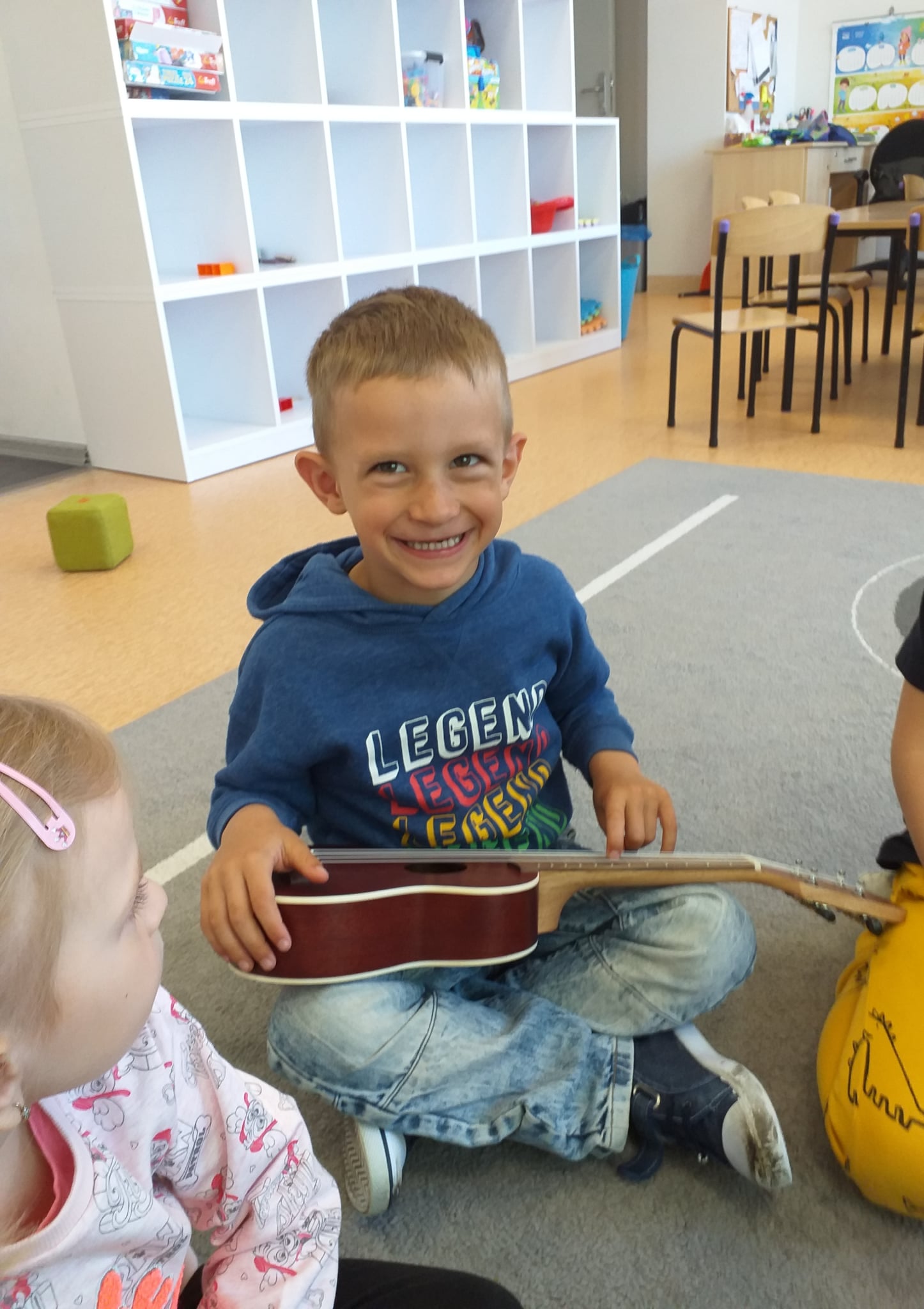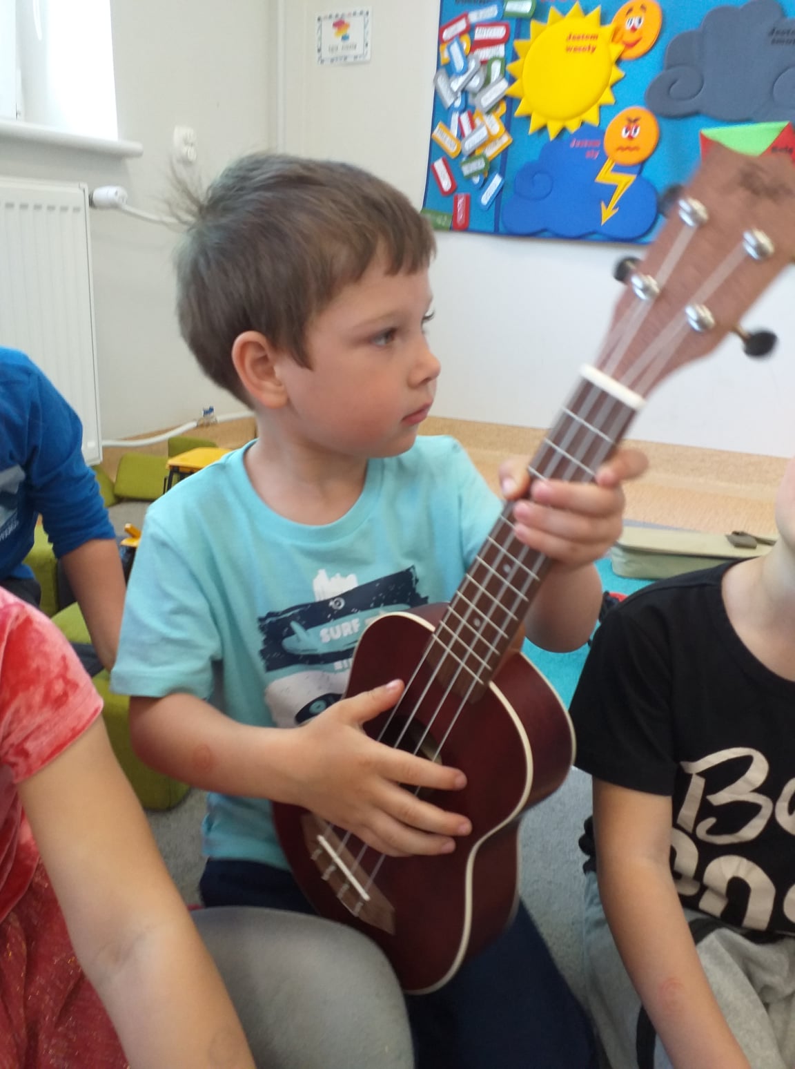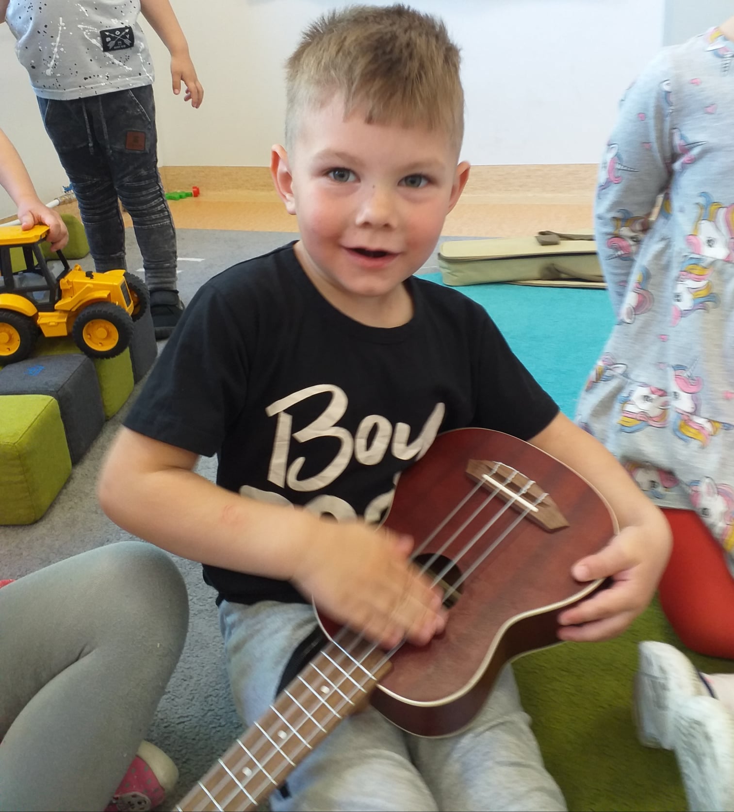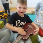 Przedszkolaki z grupy “Maluszków” przez ostatnie tygodnie poznawały na rytmice instrumenty. Były to instrumenty melodycznie (keyboard) oraz niemelodyczne (trójkąt, klawesy, kołatka). Najbardziej jednak podobał się instrument strunowy szarpany – ukulele. Przedszkolaki bawiły się również przy muzyce z SIgumą. ![]()