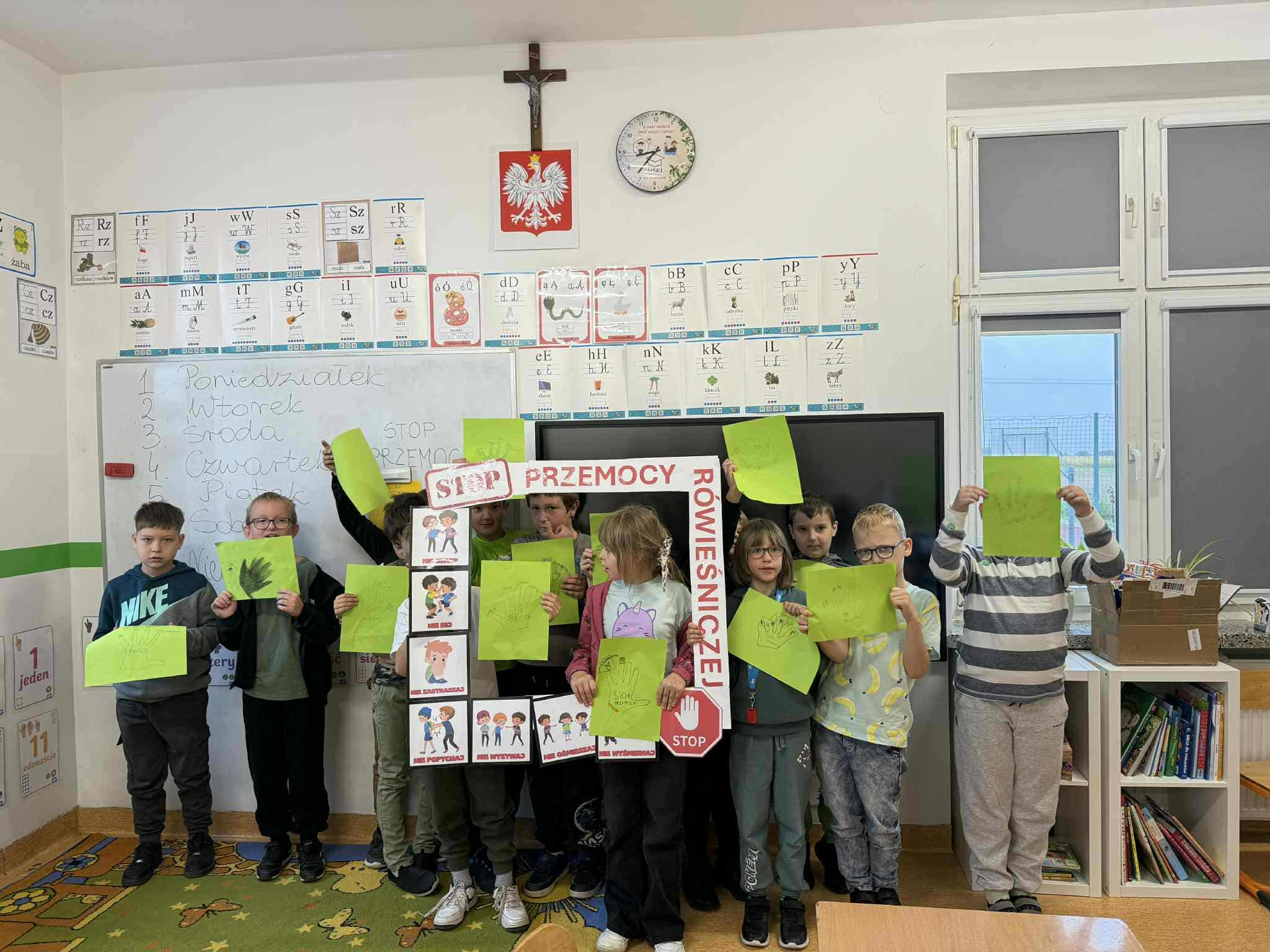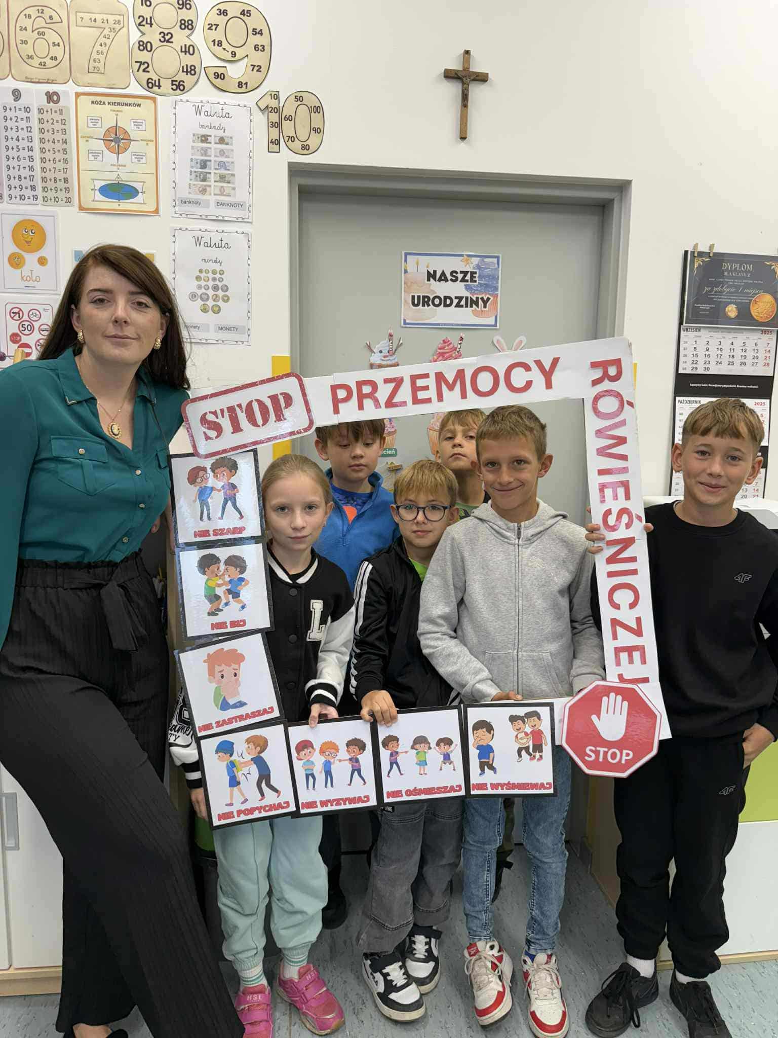 Każdego dnia uczniowie zakładali inne kolory, które symbolizują emocje, tworzą plakaty i rozmawiają o przemocy podczas godzin wychowawczych oraz zajęć profilaktycznych🟡🟢🔴🔵❤️‍🩹