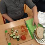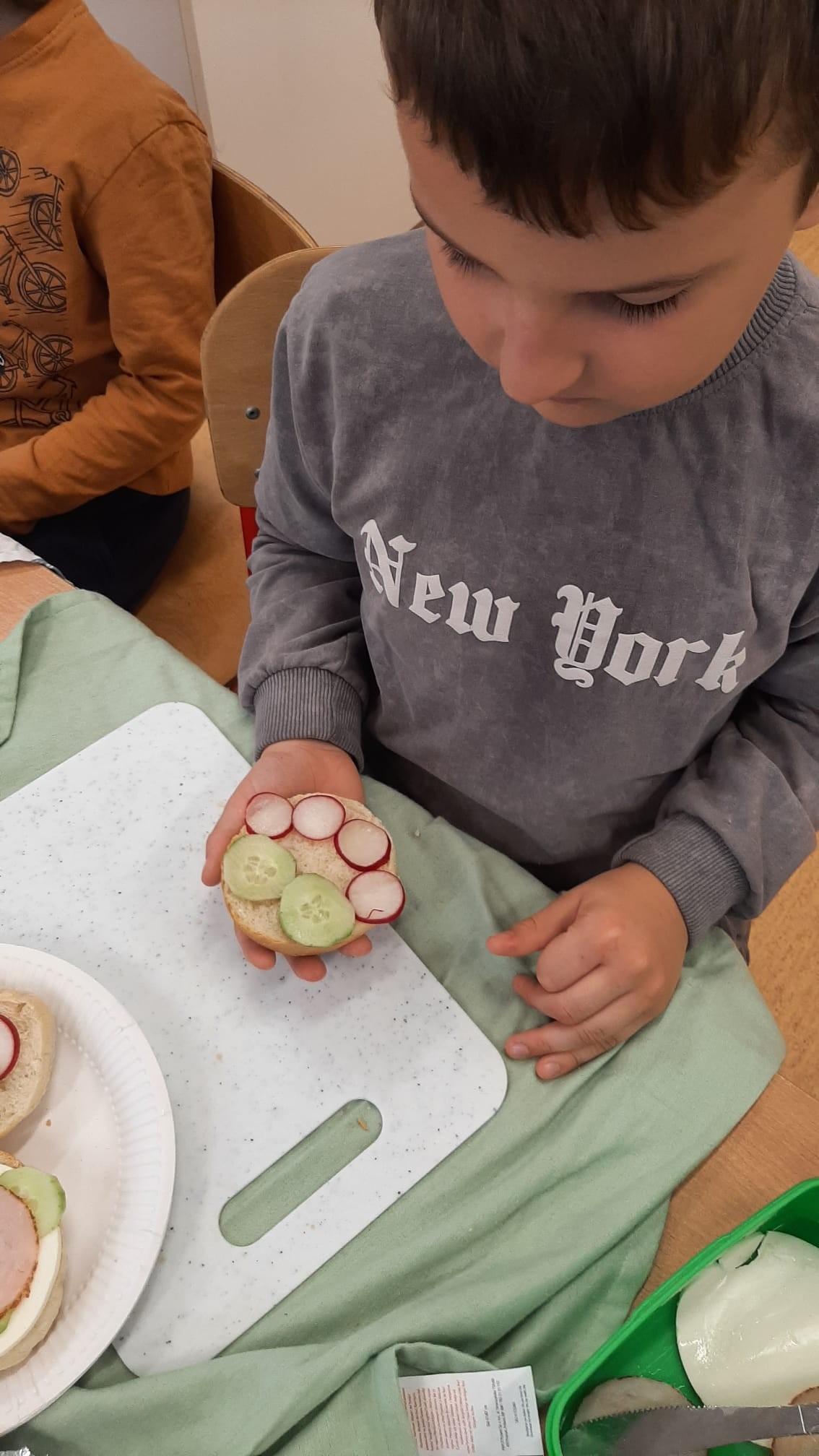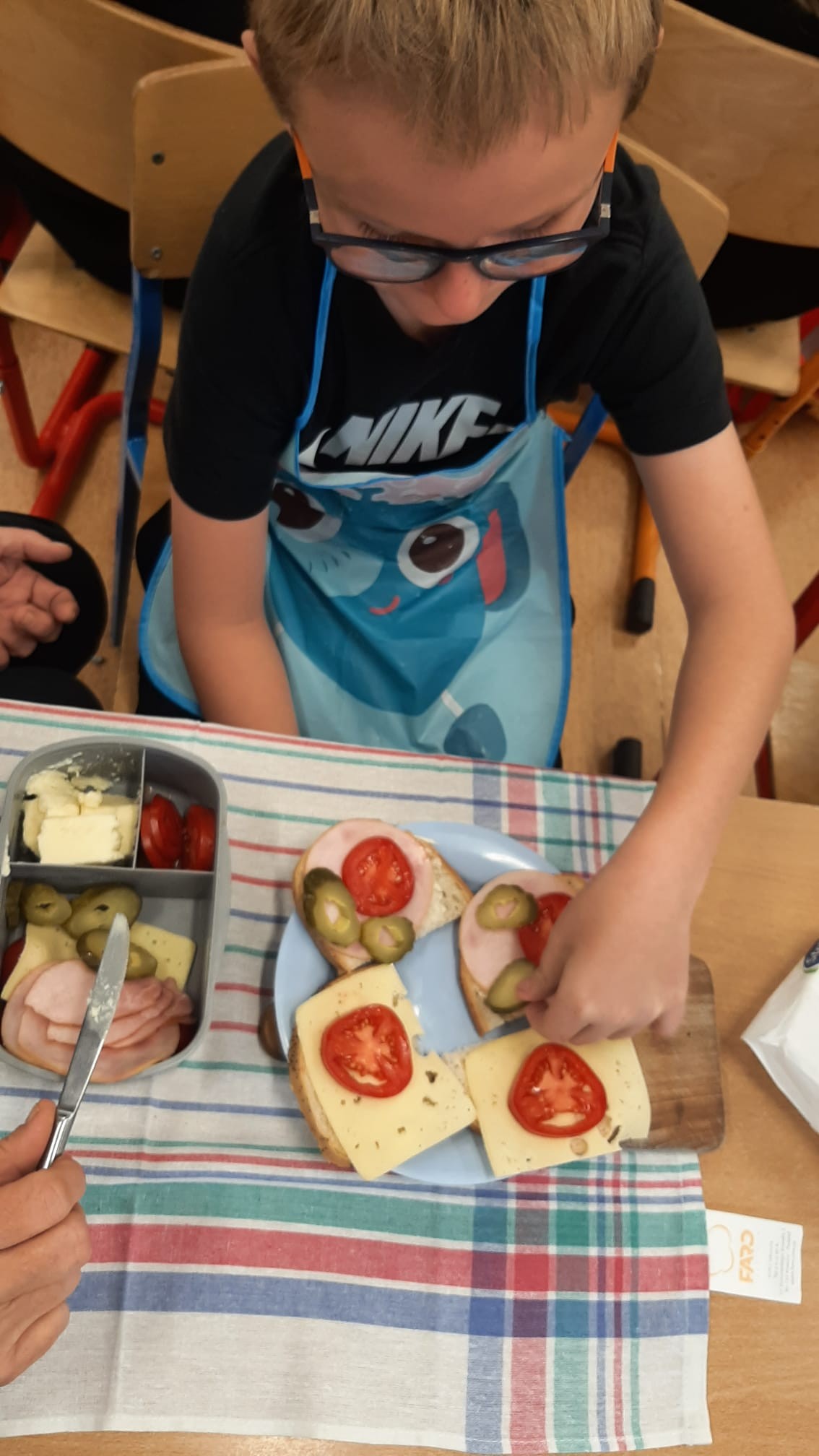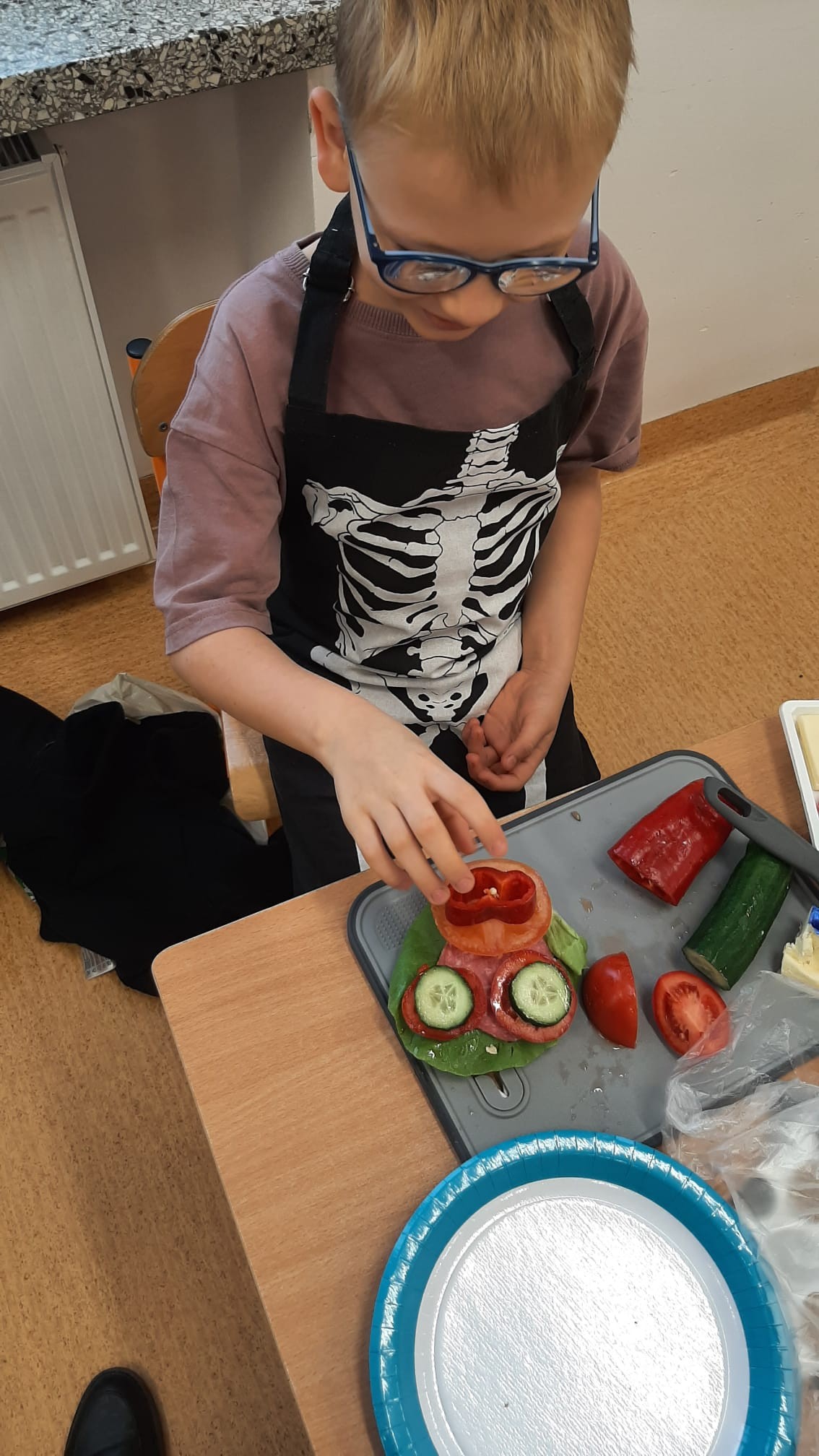 W ramach tygodnia poświęconego zdrowemu odżywianiu w klasie 2, uczniowie przygotowywali zdrowe, kolorowe kanapki. Pomysłowość i kreatywność dzieci nie miały granic – powstały kanapki w kształcie zwierzątek oraz wesołych buziek. Mimo jesiennej aury, w sali panowała radosna i pełna energii atmosfera, a na talerzach królowały świeże warzywa i zdrowe dodatki. Dzieci udowodniły, że zdrowe odżywianie może być smaczne, ciekawe i kolorowe nawet jesienią! ![]()