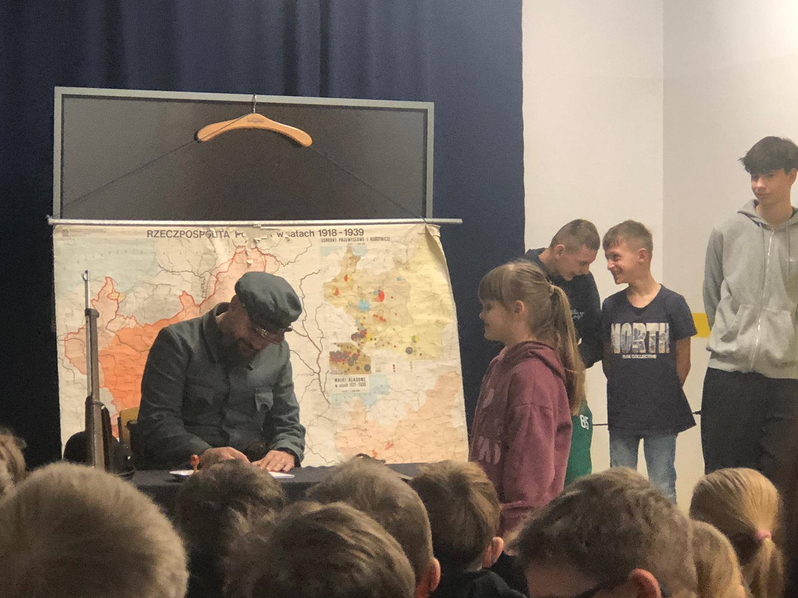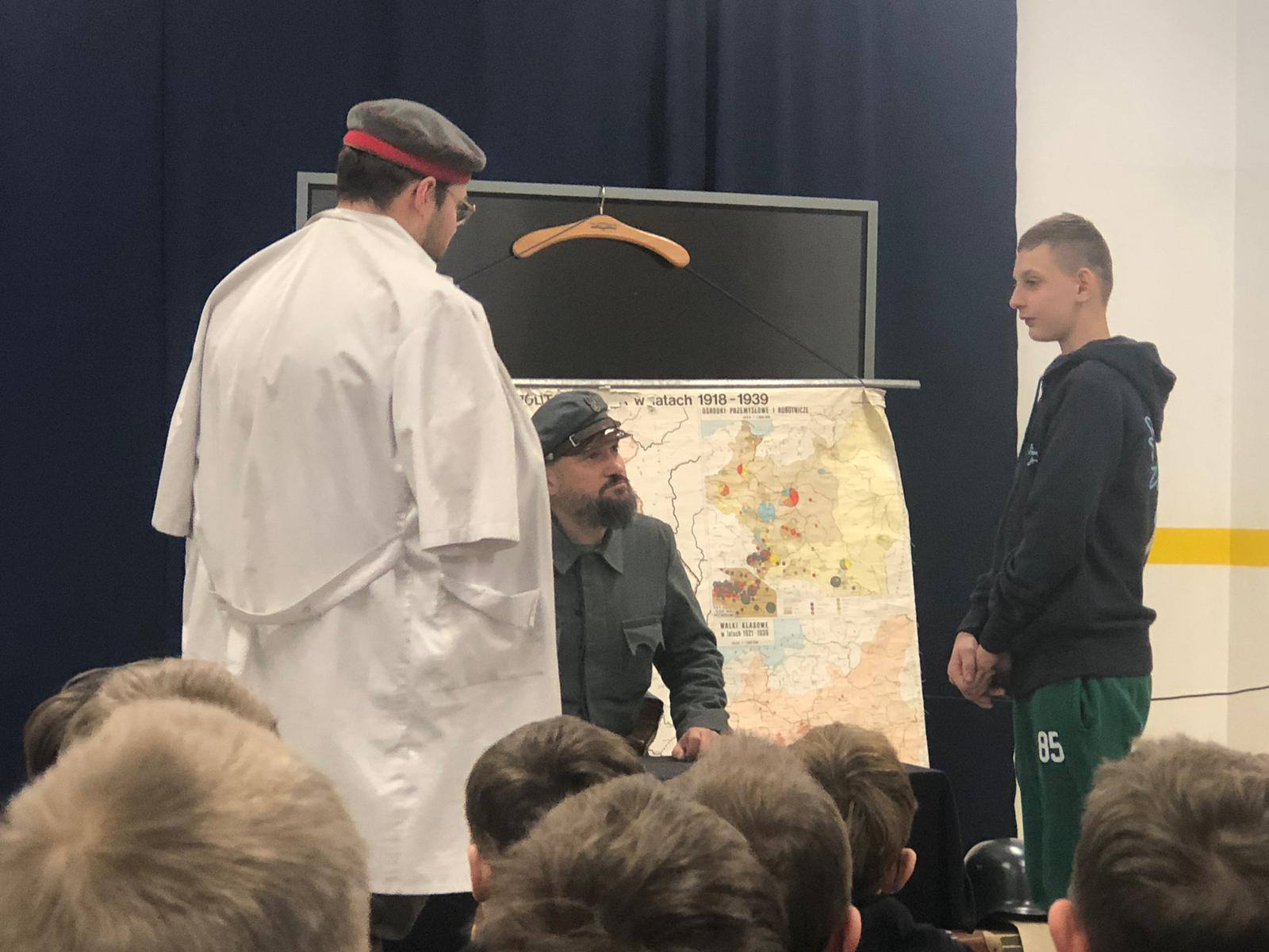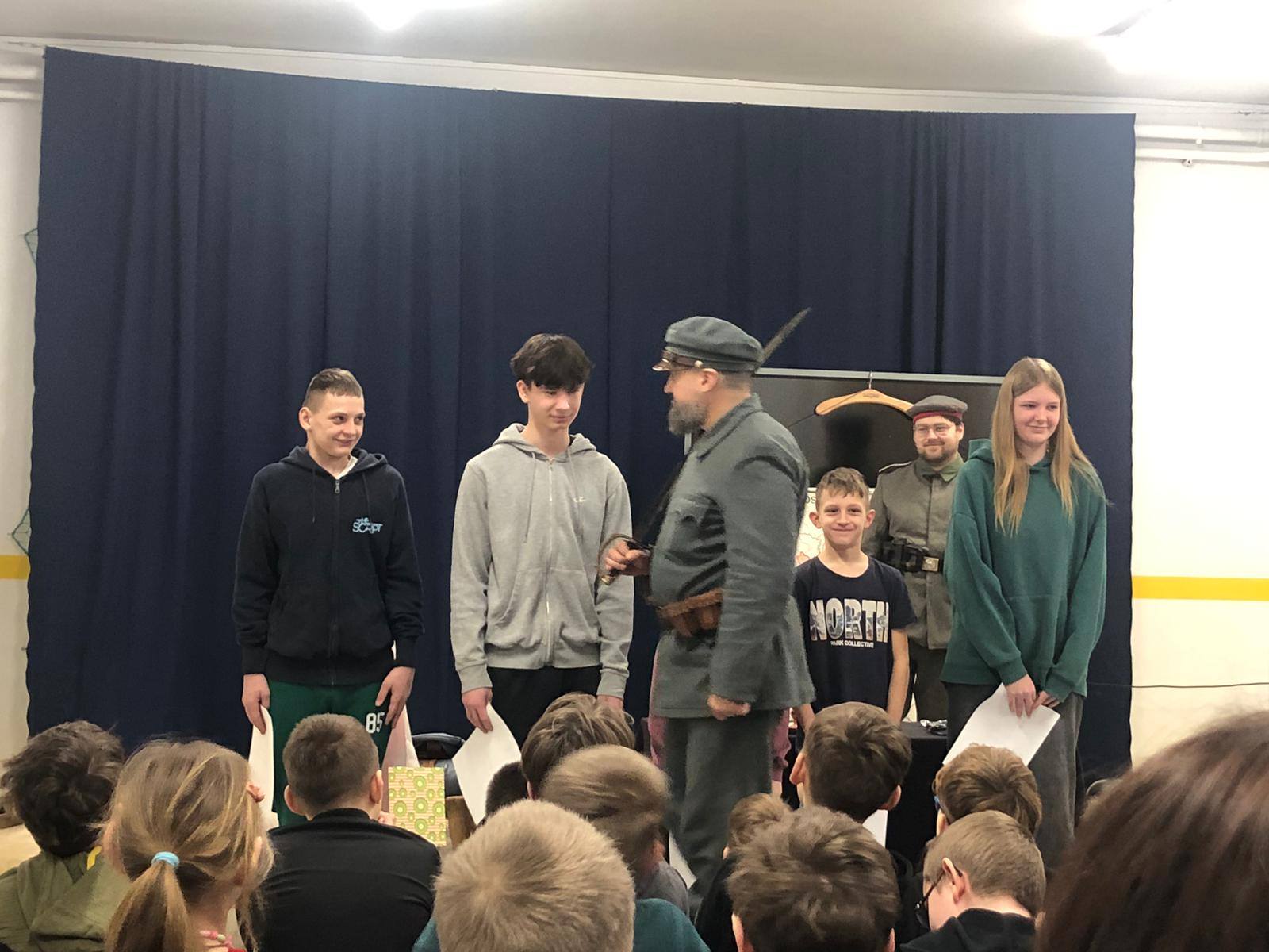 Uczniowie mieli okazję nie tylko posłuchać ciekawych opowieści o tamtych wydarzeniach, ale także zobaczyć historyczne stroje, rekwizyty i poczuć klimat tamtej epoki. Była to niezwykle wartościowa i angażująca forma nauki, która na długo zostanie w naszej pamięci!