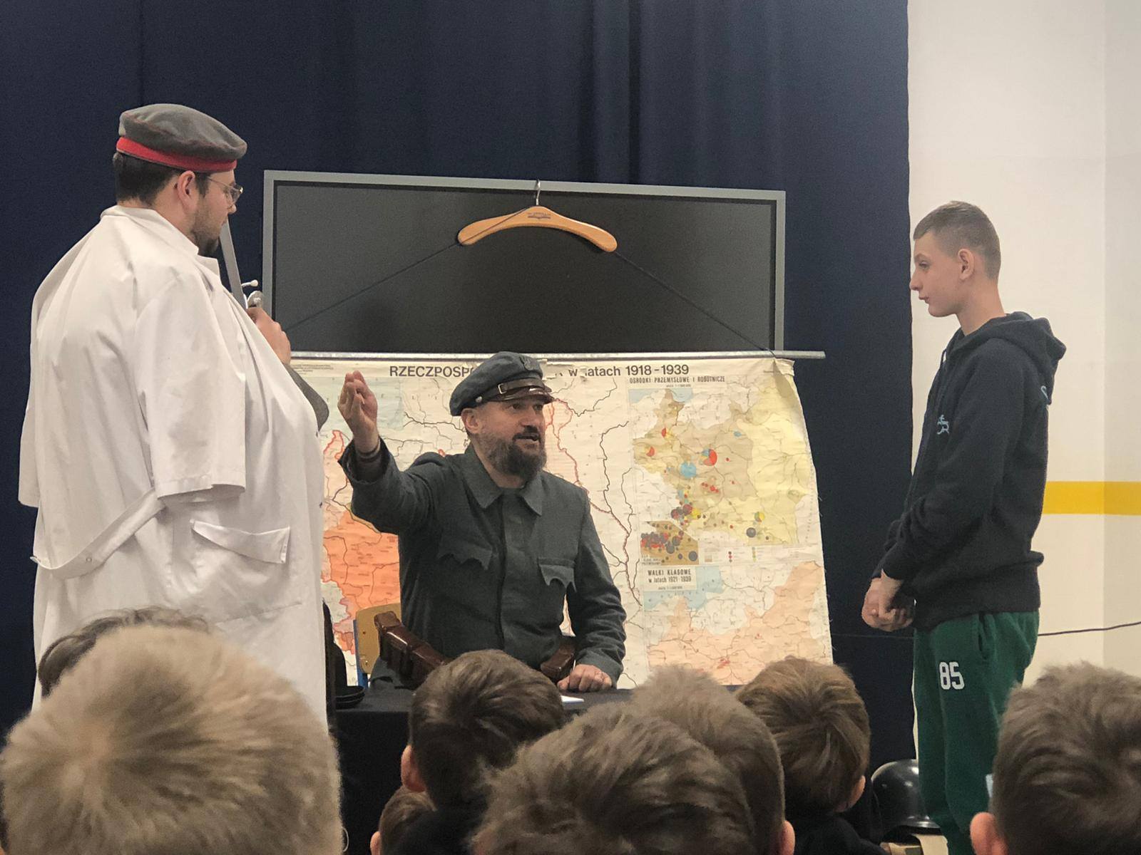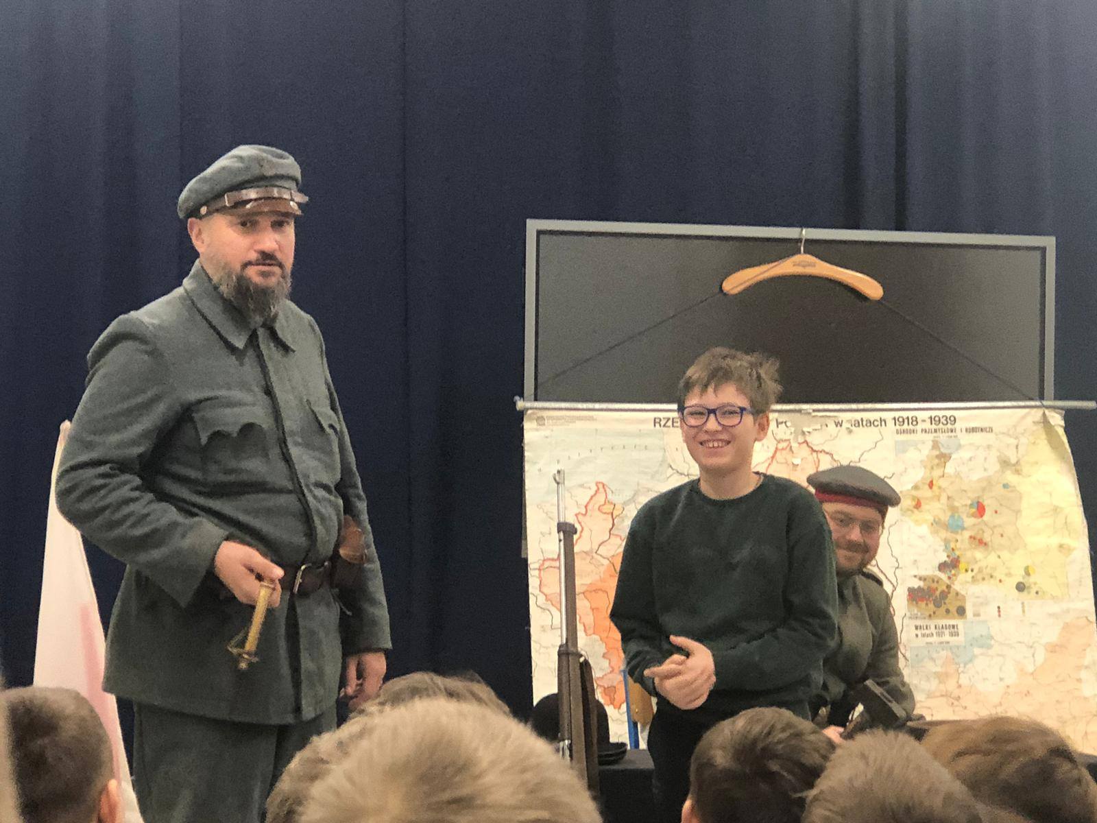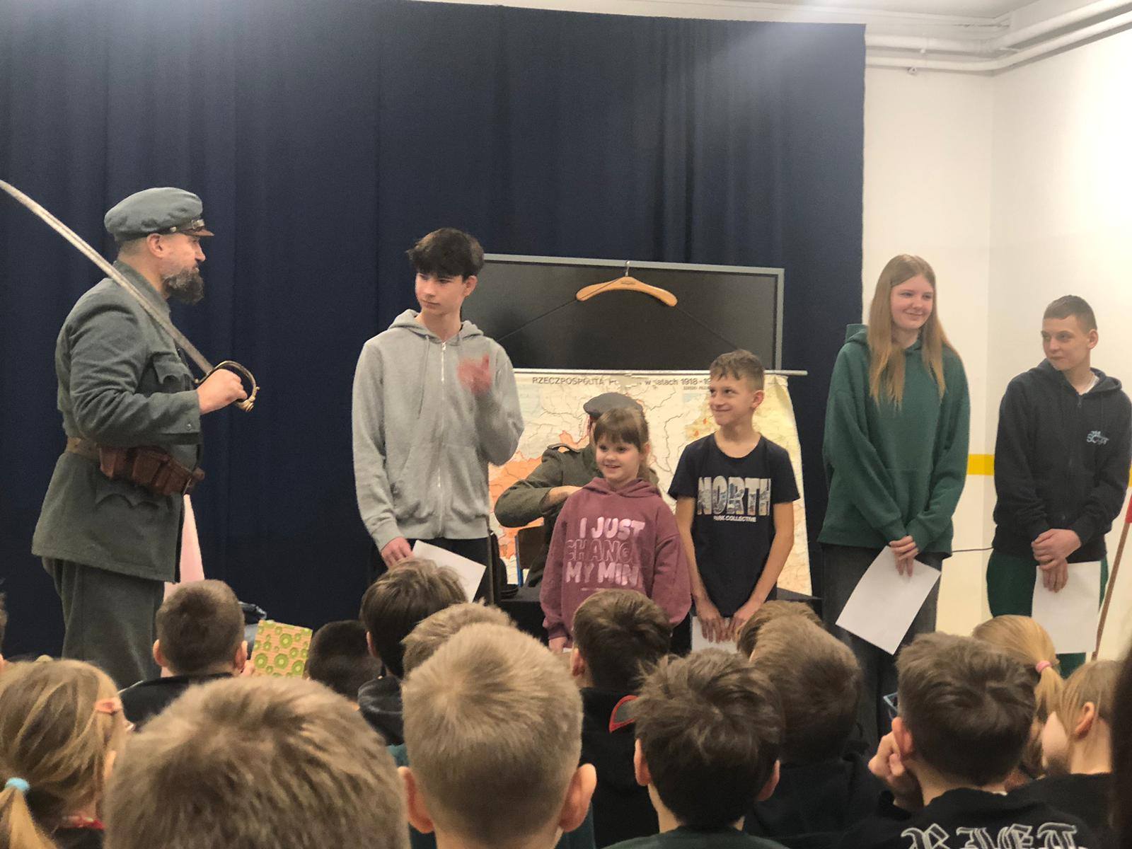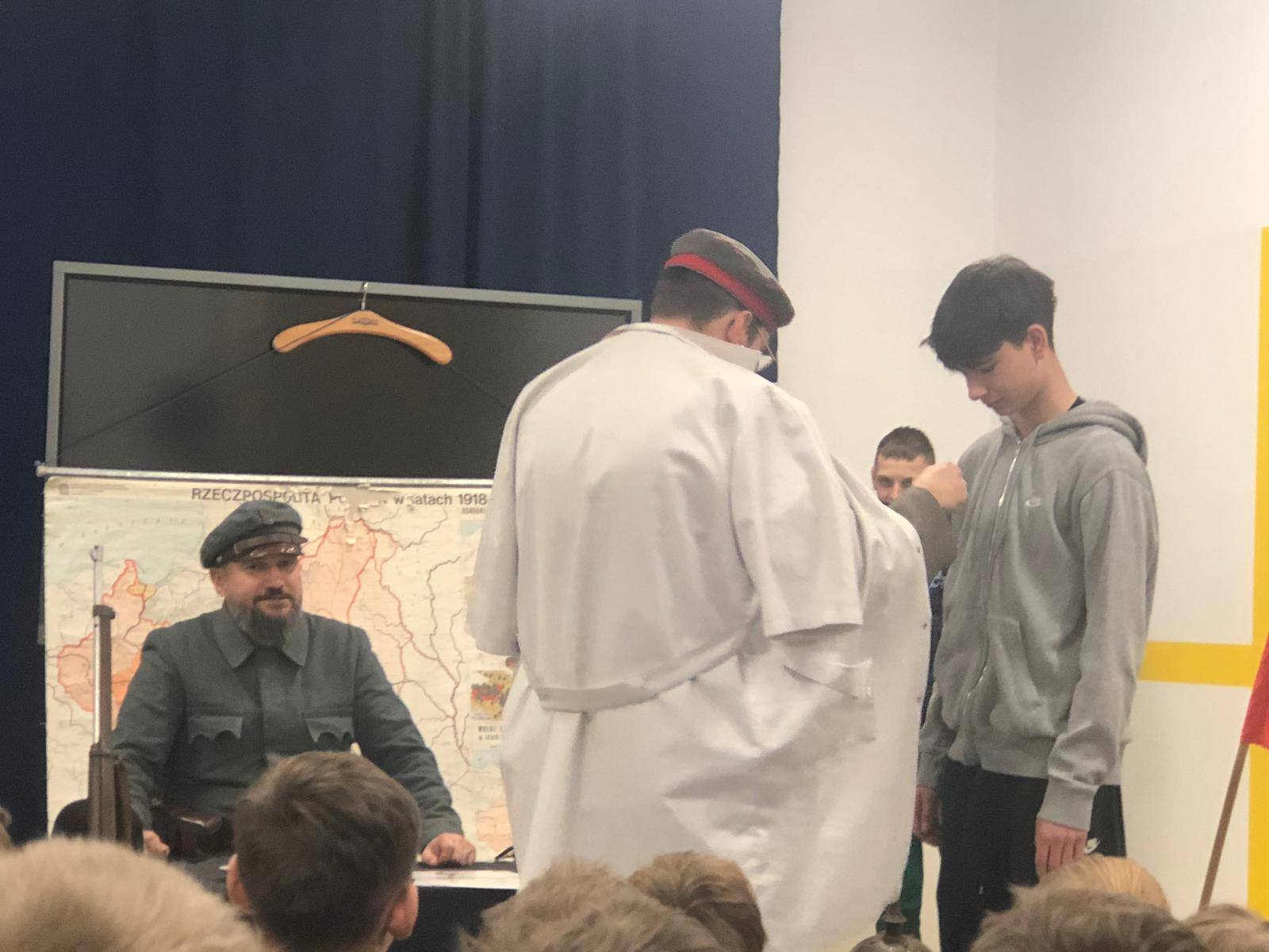 Uczniowie mieli okazję nie tylko posłuchać ciekawych opowieści o tamtych wydarzeniach, ale także zobaczyć historyczne stroje, rekwizyty i poczuć klimat tamtej epoki. Była to niezwykle wartościowa i angażująca forma nauki, która na długo zostanie w naszej pamięci!