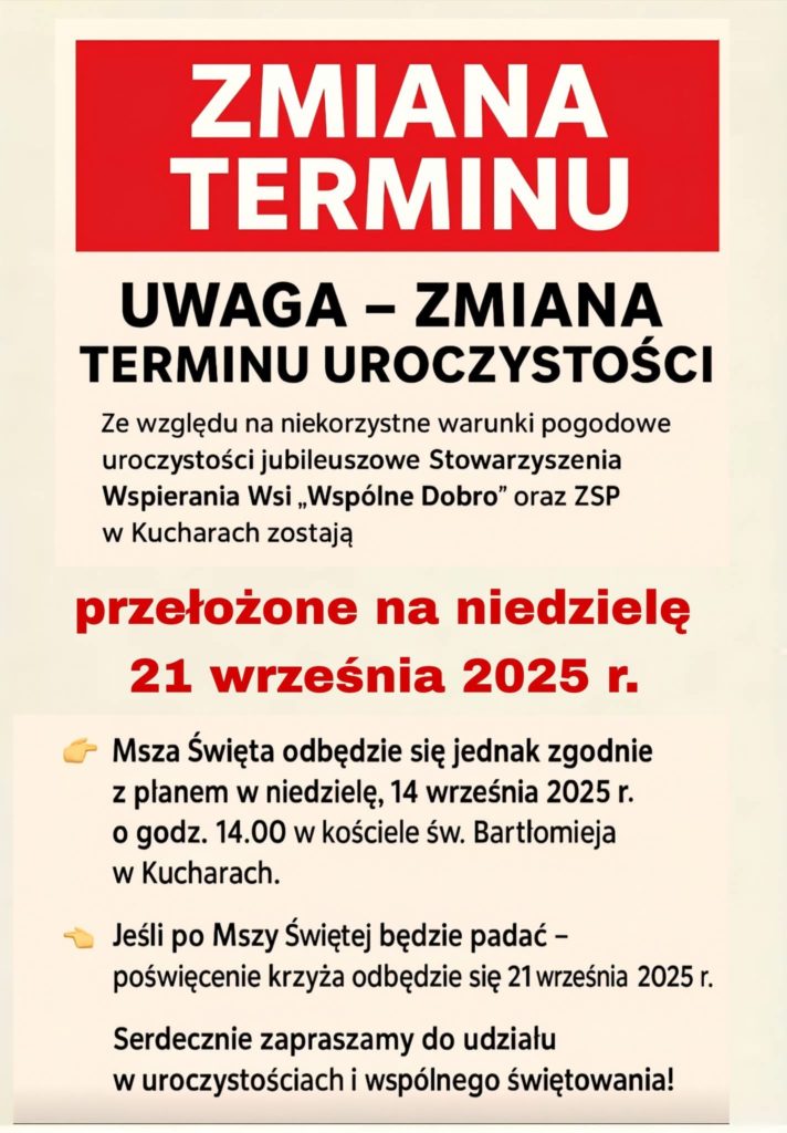 21.09.2025r świętowaliśmy 10-lecie Stowarzyszenia Wspierania Wsi “Wspólne Dobro” w Kucharach! Był to dzień pełen radości, wspomnień i wdzięczności wobec wszystkich, którzy przez te 10 lat tworzyli i wspierali naszą szkołę. Uroczystość rozpoczęła się częścią oficjalną i artystyczną, w której uczniowie zaprezentowali swoje talenty. Po części oficjalnej odbył się festyn rodzinny z wieloma atrakcjami i lokalnymi […]
